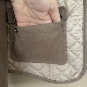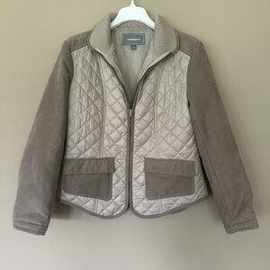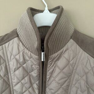 Johnston & Murphy Quilted Zip Jacket Women L Pockets Tan Brown Fall Winter