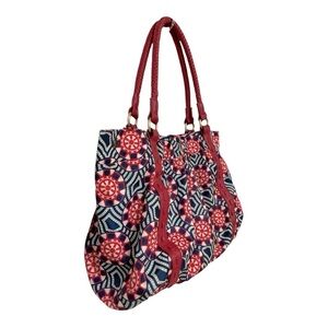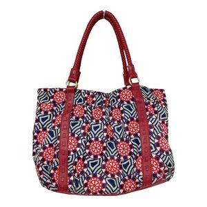 Johnston & Murphy Red, White, Blue and Green Tote Style Nylon/Leather Purse