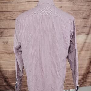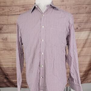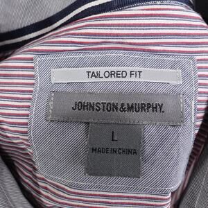 Johnston & Murphy Shirt Mens Large Red Blue White Stripe Tailored Fit Cotton