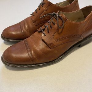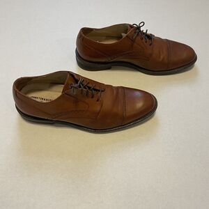 Johnston Murphy Shoes Men's 9M Reeve Cap Toe Signature Oxford Brown Sheepskin. Good used condition. Normal wrinkling/ creases near the toes. Light scratches. Heels/ Soles show wear.