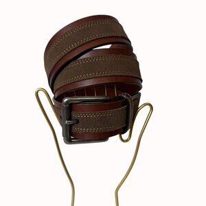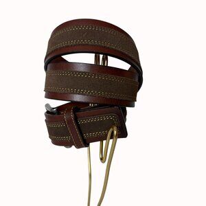 Johnston & Murphy Brown Leather Suede Overlay Belt Men’s Size 34,Two Tone Classic Stitch Detail Belt, Vintage Preppy Casual Accessory