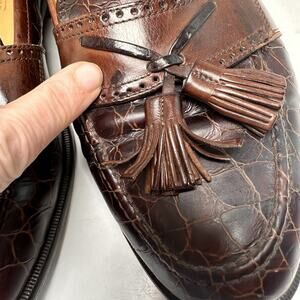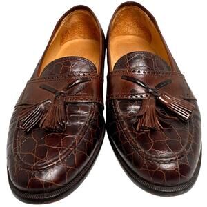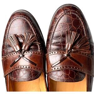 Johnston & Murphy Sz 9 M Brown Cellini Crocodile Tassel Loafers Made In Italy Career Dressy Wedding Frat Boy Professional Old Money Preppy