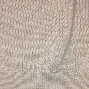 Classic tan zip-up sweater. Sleeveless design with quarter zip. Ideal for layering. Small spots of pea size stains near the front hem that are hardly noticeable. Overall, still in good shape. 100% Pima cotton. Please zoom in photos for the best description.