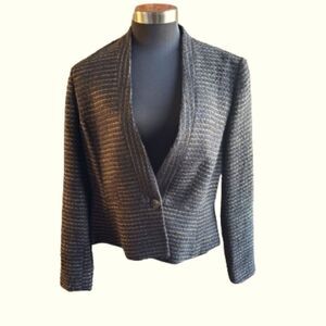 Johnston & Murphy tweed jacket one button closure, fully lined. Dark Navy Blue with gray with a touch of gold threads… a great piece to include in your wardrobe. Size XL NWT.
