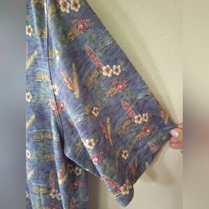 Johnston Murphy Vintage Slub Polo Surf Board print Collared Short Sleeve Stretch Mens Size M Pit to pit flat lay 21" length from collar to hem 31.5" measurements are approximate