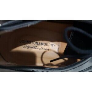 Johnston & Murphy Wingtip Shoes Black Leather 10 M Sheepskin Signature Series