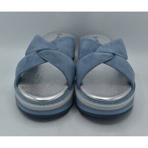 Johnston & Murphy Women Size 8.5 Grace Cross Band Slate Blue Suede Slide Sandals