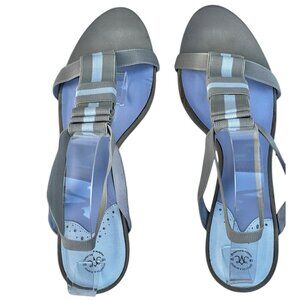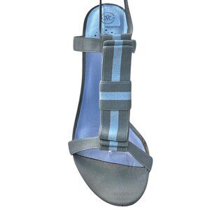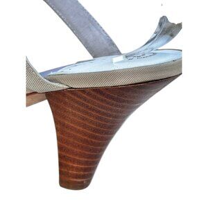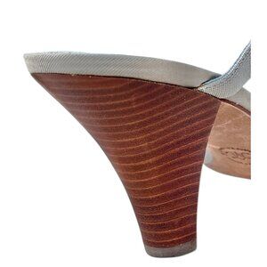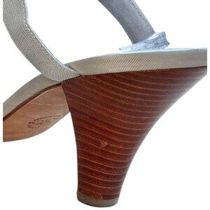 Johnston & Murphy Womens 10M Beige & White Sandals Heels Striped Elastic Straps