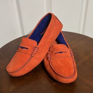 🔥 Johnston & Murphy Womens Orange Suede Slip On Penny Loafer Driving Shoes