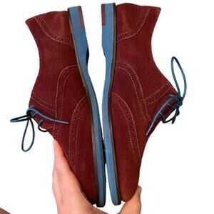 Johnston & Murphy maroon and teal lace-up suede oxfords size 6