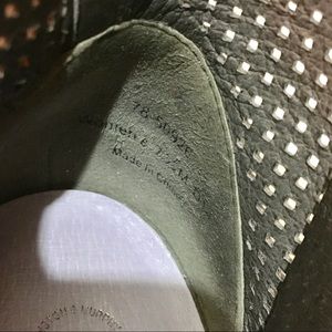 Johnston & Murphy perforated grey heeled booties w/ side zip closure, lightly cushioned footbed, non skid sole and heels, really nice leather, EUC - heels lightly worn. See behind heel for small scratch in heel, and toe for darker mark, both not noticeable when wearing. Leather has natural defects and scratches. Would recommend leather wipes to keep them looking nice (under $5 at Target or Walmart) and probably not safe to wear w dark denim if it's long enough to rub on the boots.