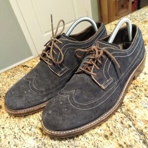 Johnston and Murphy Navy Blue Wingtip Oxfords Nubuck Leather Dress Shoes 8 M