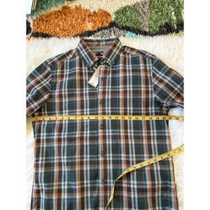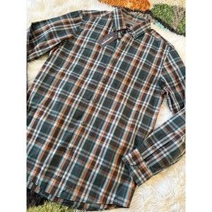 New with tags Johnston and Murphy button front long sleeve plaid shirt. Size small.