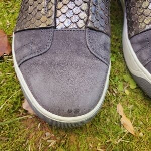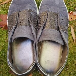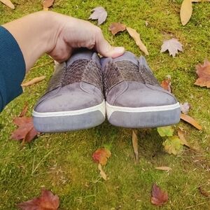 Johnston and Murphy Womens Gray Suede Leather Slip On Loafers