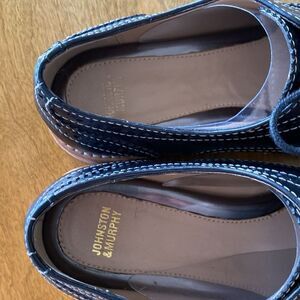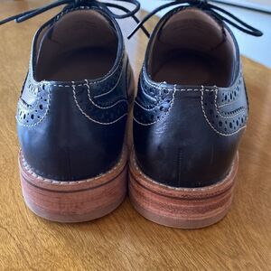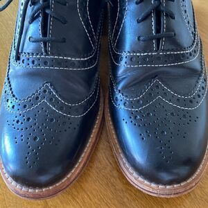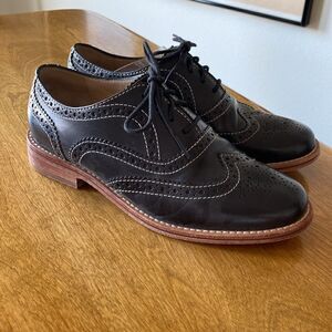 In very good condition. Classic 4 eyelet wingtip design. These shoes are all leather construction with an inch heel.