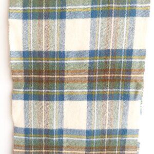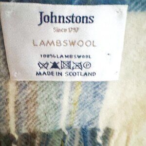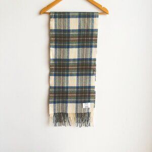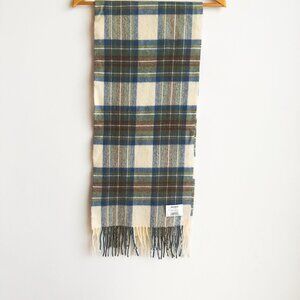 Johnstons Lambswool Blue Brown Plaid Scarf Made in Scotland.