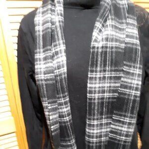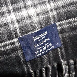 Johnstons of Elgin 100% Cashmere Scarf by Johnstons of Elgin Made in Scotland Black & White Plaid Measures 65" x 10". This scarf is brand new w/o tags