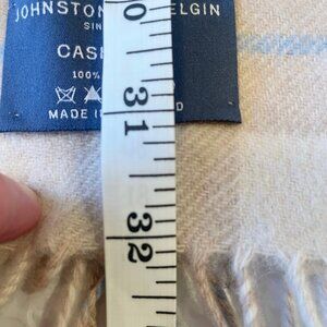 This is for an excellent condition Johnston's of Elgin 100% cashmere scarf Plaid/Tartan Made in Scotland (see conditions). See photos for approximate measurements--10 inches wide and 64 inches long (without tassels). This is in excellent condition. A wonderful addition to your collection. Very soft. Just wonderful.