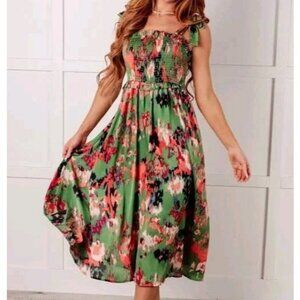 Treat yourself to the perfect summer dress! Our A Little While Longer Dress makes a statement in an eye-catching dark floral print with romantic details like a smocked bodice and fluttery self-tie straps. Accentuated with flouncy ruffle details, you'll look and feel amazing all season long.