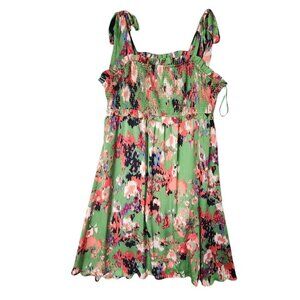 Joidfl Mini Dress Womens 2X Green Silky Dredd Abstract Print Pleated Sleeveless