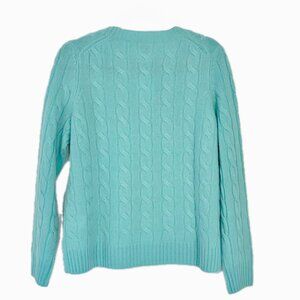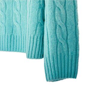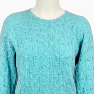 Joie 100% Cashmere Cable Knit Crew Neck Sweater Aqua Pullover Womens M NEW