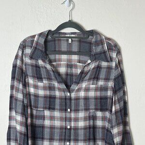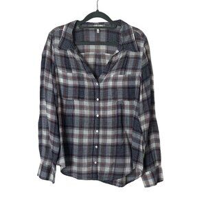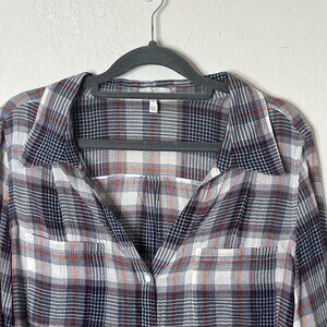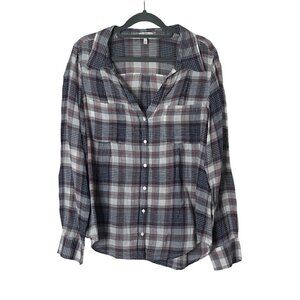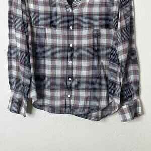 Joie 100% Cotton Button Down Blouse Roll Tab Sleeve V-Neck Blue Red Plaid Small