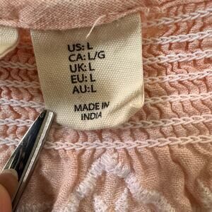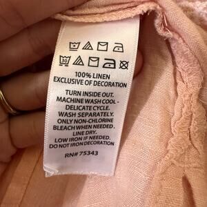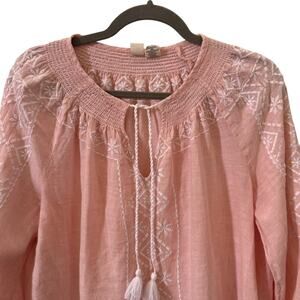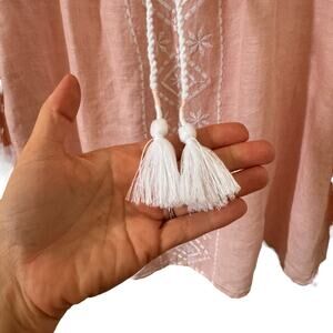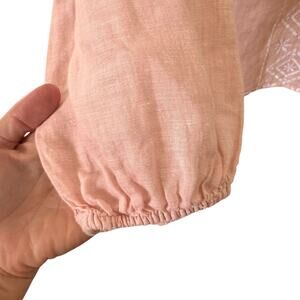 Joie 100% Linen Embroidered Floral Peasant Boho Blouse Pink White Size Large