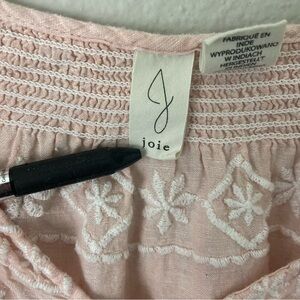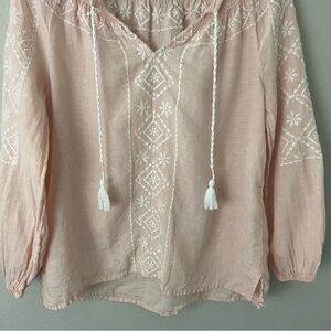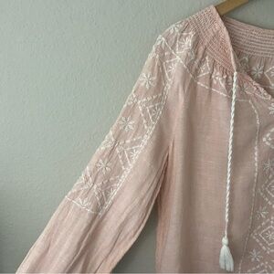 Joie 100% Linen Embroidered Peasant Top Pink White Embroidered Boho Sz S