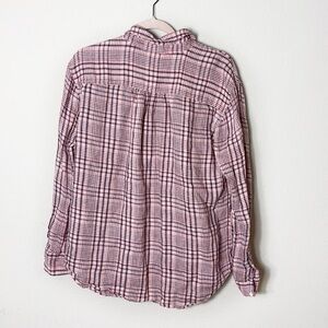 Joie 100% Linen Plaid Button Down Shirt size M in coral pink and blue