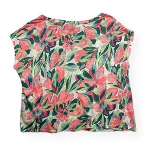Joie 100% Linen Top Women XL Pink Green Floral Knit Boxy Beachy Popover