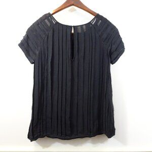 Joie 100% Silk Black Pleated Short Sleeve Blouse Small Raw Edge Career Wear