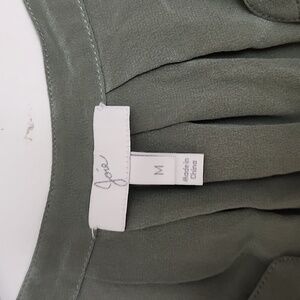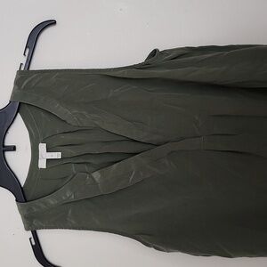 Joie 100% Silk Blouse Sleeveless Olive Green Career, Quarter Button Neck