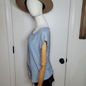 Joie 100% Silk Blue Leaf Print Blouse Medium Coastal Resort Style Beach Vacation