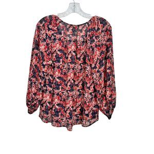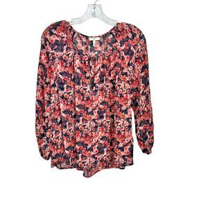 Joie 100% Silk Floral Print Keyhole Tie Long Sleeve Top size Medium