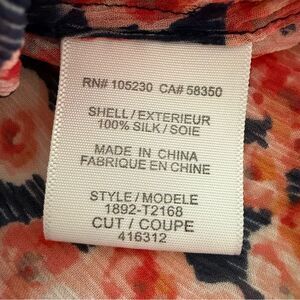 Elevate your wardrobe with this Joie 100% silk blouse, adorned in a rich floral print of crimson, blush, and navy. Its relaxed silhouette and delicate tie neckline offer effortless elegance, perfect for both daytime charm and evening allure.