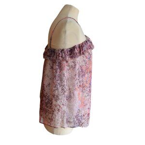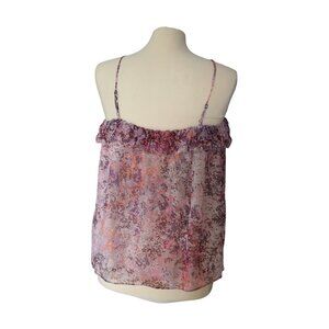 Joie Silk Floral Ruffle Strap Cami Top M Abstract Print Boho Sheer