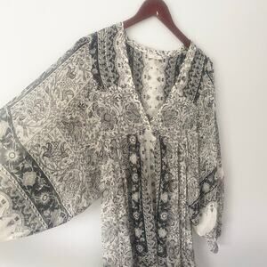 Joie 100% Silk Floral Sheer Short Length Long Sleeve Dress Coverup Size Small