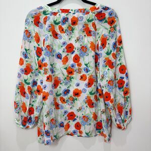 Features: Joie Women 100% Silk Multi Floral Blouse. Orange and Blue Poppies. Flowy & Airy. Chiffon silk.