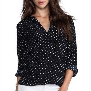 Joie 100% Silk Polka Dot Academia 3/4 Sleeve Blouse Top, Black & White, Size XS