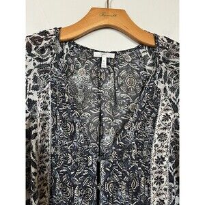 Joie 100% Silk Tunic Shift Dress, 3/4 Sleeve Tapestry Floral Pattern Size XS