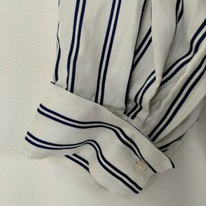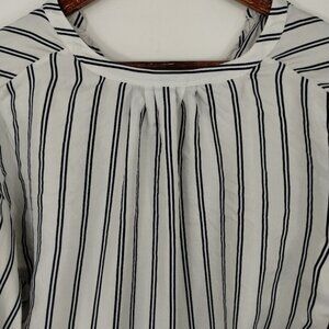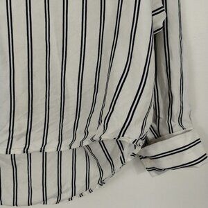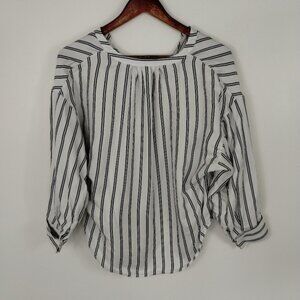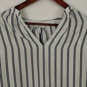 Joie 100% Silk V Neck Blouse Size XS Striped White Black Classic Workcore.