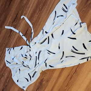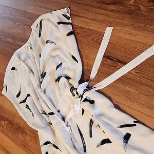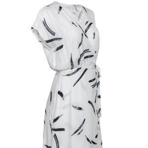 Joie - 100% Silk White Midi Wrap Dress W/ Bold Navy Brush Strokes Sz M