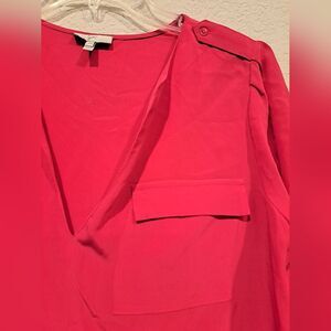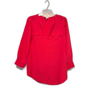 Joie 100% silk bright pink blouse, v-neck, double breast pockets, size xs