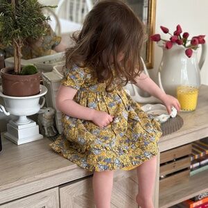 Joie 2T Toddler Dress Yellow with Floral Pattern Buttons Ruffles
