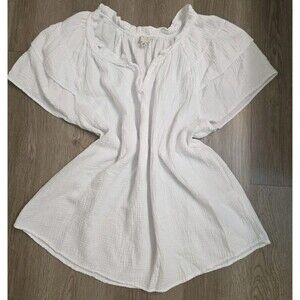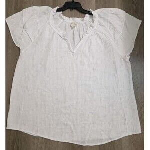 Joie 3X White Crinkle Gauze Boho Flutter Sleeve Peasant Top Blouse Plus Size