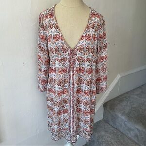 Beautiful Collie dress in a multicolor print from Joie’s a la plage line. Can be work as a cover up or dress. Minor beads missing at neckline as pictured. Otherwise, this beauty has a ton of life left.