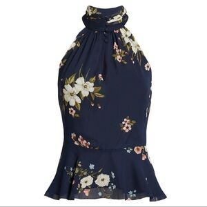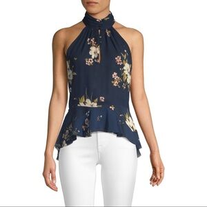 Joie Classic Abbigayl Halter Floral-Print Silk Halter Peplum Top. Front Button-and-Loop Keyhole Closure. Pleated Stand Collar. Sleeveless. 100% Silk. Lined. Super Cute & Comfy. NWT / New With Tags. Great Condition. No Stains or Rips.