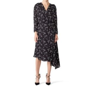 Joie Acantha Caviar Black Silk Wrap Midi Dress Size Medium – Floral Print