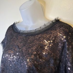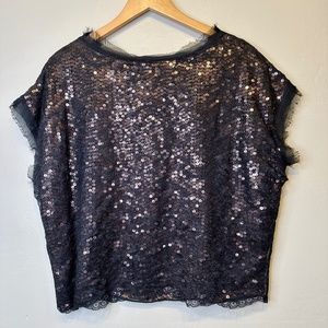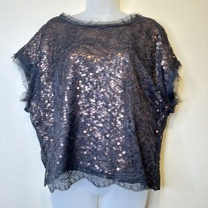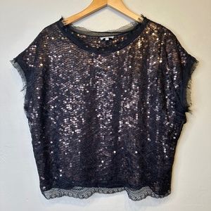 Joie | Addison Caviar Sequin Mesh Lace Cap Sleeves Cropped Fit Glam Boxy Blouse