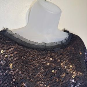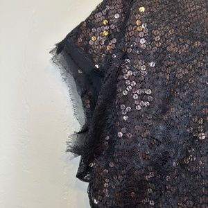 Joie Addison Caviar Sequin Layered Netted Mesh Lace Shell Bout Neck Cap Sleeves Cropped Slouchy Relaxed VSCO Dressy Street Style Shirt Crop Top Holiday Fashion Christmas New Years Eve Party Witchy Gothcore Whimsy Goth Glam Chic Mob Wife Boxy Blouse